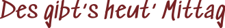 Servus +++FIRSTNAME+++, mitzunehmen täglich 11:00 - 13:30 Uhr | Frisch zubereitet | Zusätzlich zur heißen Theke täglich wechselnd | Vorbestellbar bis jeweils 10:30 Uhr per Klick. 16.01.2026 | Preise in € Eine PDF zum Ausdrucken findest du hier ». |